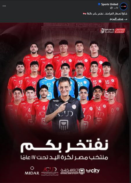 وجهت الشركة المتحدة للرياضة الشكر إلى لاعبى منتخب مصر لكرة اليد للناشئين عقب التتويج بفضية بطولة العالم عبر الصفحة الرسمية بموقع التواصل الاجتماعى فيس بوك.