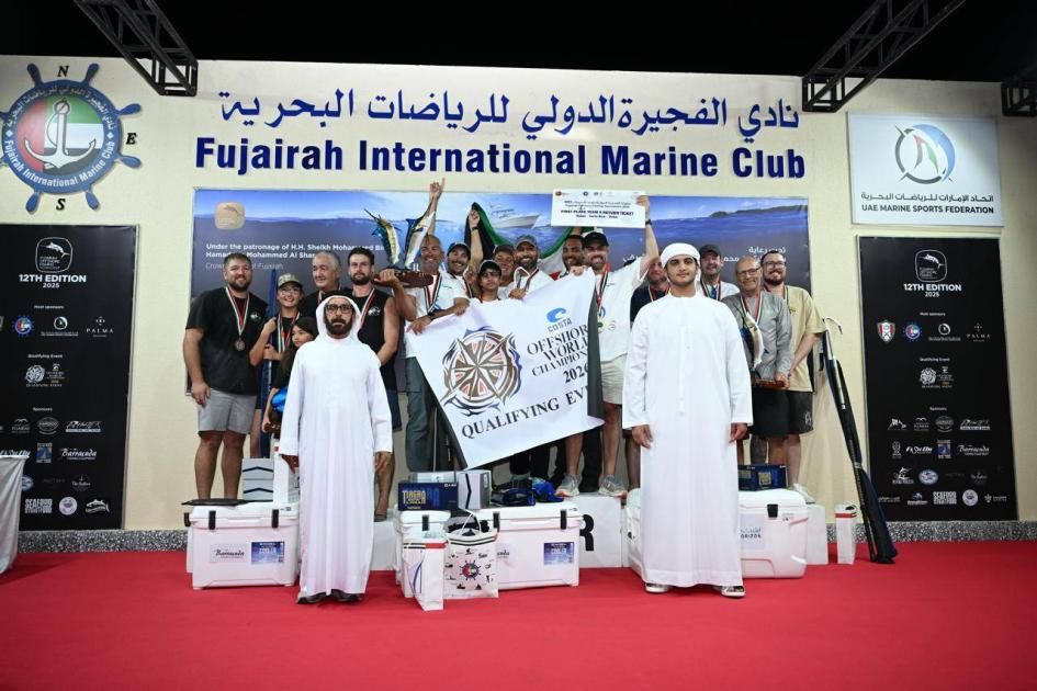 توج الشيخ حمد بن محمد بن حمد الشرقي نجل ولي عهد الفجيرة، الفائزين في بطولة الفجيرة الدولية لصيد الأسماك، التي نظمها نادي الفجيرة الدولي للرياضات البحرية بمشاركة 281 متسابقاً على متن 45 قارباً.