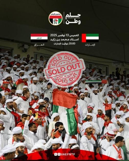 أعلن الاتحاد الإماراتي لكرة القدم نفاد التذاكر المخصصة لجمهوره في المباراة التي تجمع «الأبيض» مع منتخب العراق الخميس في استاد محمد بن زايد في أبوظبي، في ذهاب الملحق الآسيوي المؤهل لملحق عالمي في تصفيات مونديال 2026.