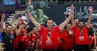 احتفالات لاعبى الأهلي بعد التتويج لقب سوبر اليد بالإمارات.. صور