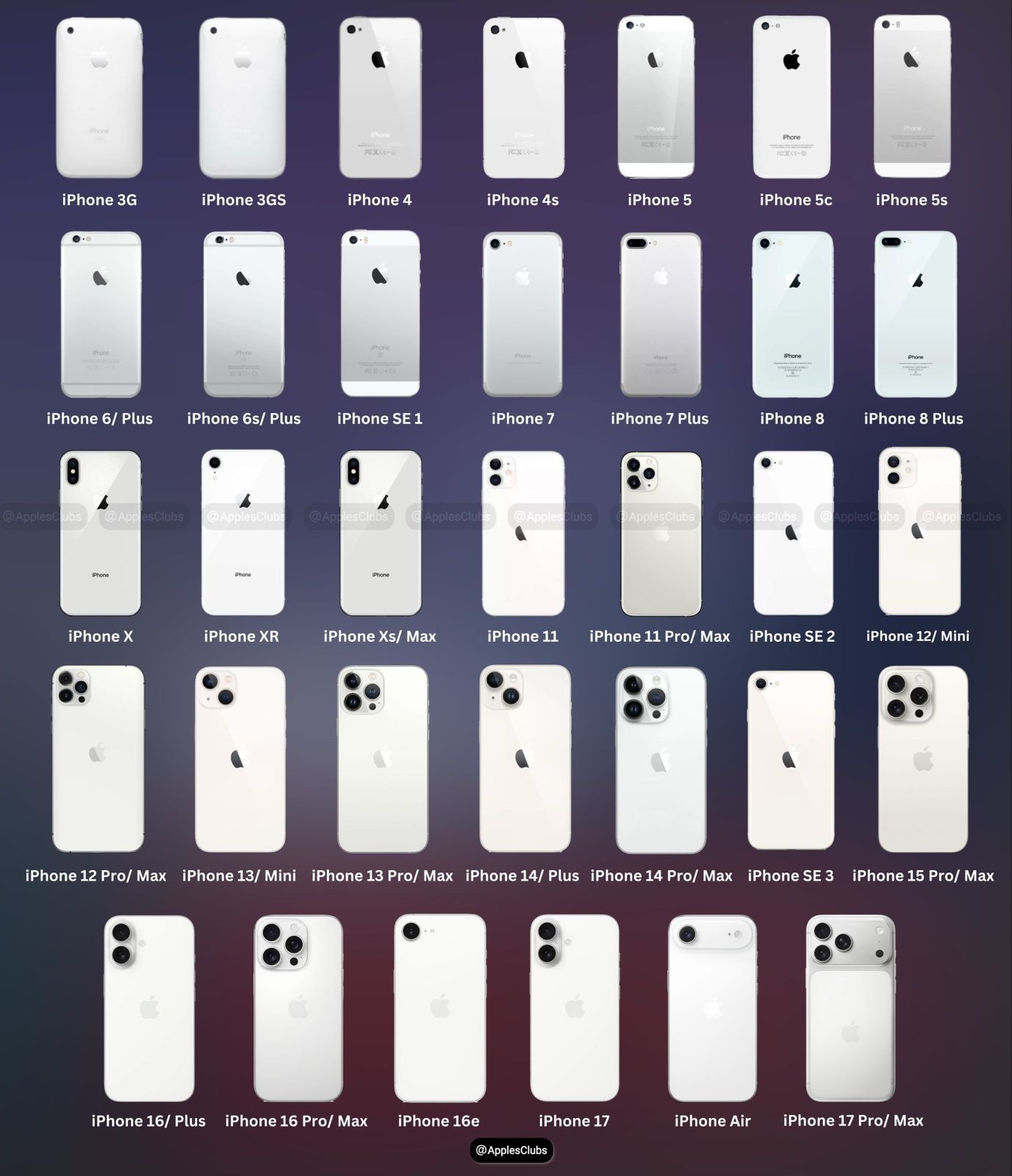 سلّط حساب Apple Club الضوء على تطوّر تصميم هواتف آيفون عبر السنوات من خلال عرض شامل لكل إصدار باللون الأبيض، بدءًا من iPhone 3G وحتى أحدث إصدارات الشركة iPhone 17 Pro Max، ليُبرز كيف حافظت أبل على هوية تصميمها رغم التغييرات الكبيرة في الشكل والمواصفات.
