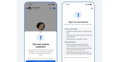 وتختبر الشركة أيضًا أدوات متقدمة للكشف عن الاحتيال فى محادثات ماسنجر على الهواتف المحمولة، وعندما يتلقى المستخدم رسالة يُحتمل أن تكون احتيالية، سيظهر إشعار تحذيرى يُعلمه بأن الرسالة مشبوهة، وأنه يُمكنه إعادة توجيهها إلى ميتا لمراجعتها بواسطة الذكاء الاصطناعي.